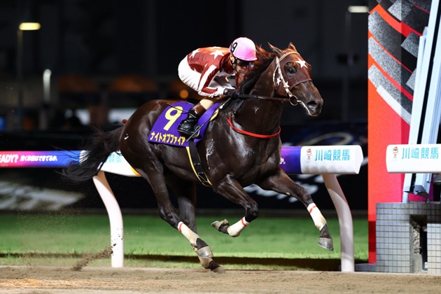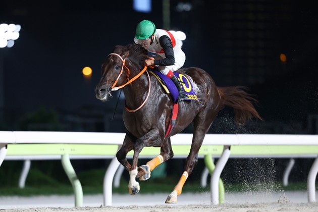 大井生え抜きでデビュー戦こそ6着だったが、2戦目から【11・5・1・0】。地道に勝ち星を積み重ね、前走の東京記念・SIIで、とうとう念願の重賞ウィナーになった。中団外目追走から徐々に順位を上げ、直線には2番手で進入。前を行くグロリアムンディを早い段階で競り落とすとそこからは独壇場。グイグイ前進して5馬身差で勝利した。圧巻のレースに高野毅調教師は「長めの距離を使うようになって戦績が良くなってきたうえに、ローテーションがドンピシャだった。強敵がそろった中で、よく勝ってくれた」と評価する。その後は短期放牧を挟み「戻ってから毛ヅヤはピカピカだよ。相手はJRA馬だからね。ある程度のまぎれがあるように、少頭数でないほうがいいな。時計もかかってほしいところ」とトレーナーはすでにレースのイメージを膨らませている。上がり馬の初ダートグレート参戦に注目だ。
