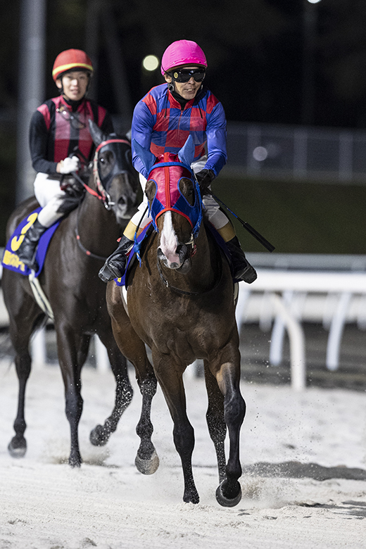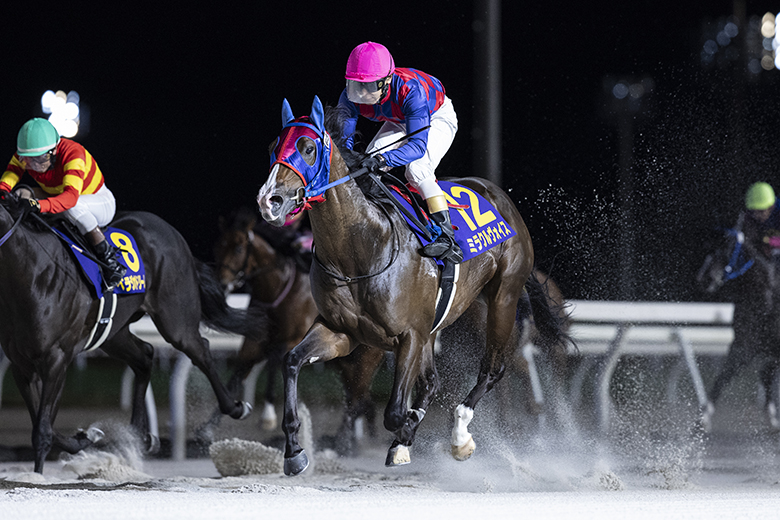 向正面奥の引き込み線からのスタート。戦前予想された通り、速度を武器に逃げ切りでオープンまで3連勝してきた1番人気のエターナルウインドが、2番枠から先手を主張する。しかし他馬も簡単には逃がさず、序盤のペースは自ずと上がった。前半3ハロンのラップは35秒4。先行馬には明らかに厳しいペースだった。