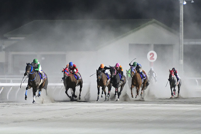 スタート時の気温は5度前後。空気は乾燥して、良馬場でのレース中には大量の砂煙が舞い上がっていた。こういうときの高知競馬はインコースが使えて、逃げ先行タイプが有利になることが多い。