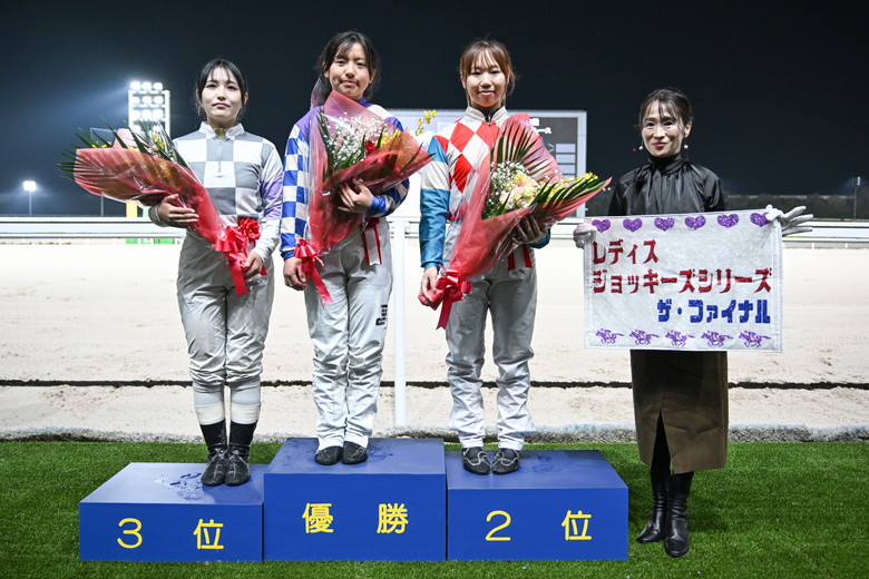表彰台はデビュー6年以内の騎手たちが占めた。総合優勝はルーキーの小笠原騎手で、2位に深澤騎手。3位には佐々木世麗騎手(兵庫)で、順位を聞くと深澤騎手と抱き合って喜んだ。