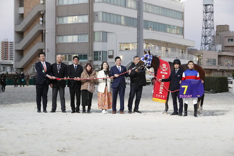 主導権を取ったアンジュルナは、自分のペースを維持しながらラップを刻み、最後は突き放す完勝と言えるレース内容。ゴール前では野畑凌騎手の渾身のステッキに応えるかたちに見えたが「叩いた中には見せムチもありました」(同騎手)と言うほど余裕があった。