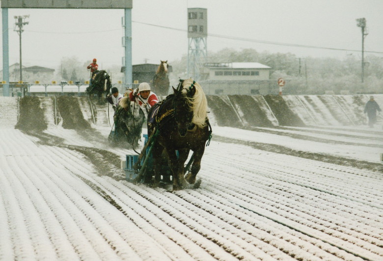 同年12月、そのキンタローが10歳(数え年)で定年引退する、最後のレースは北見の蛍の光賞だと聞いて、今度は北見を訪れた。当時の蛍の光賞は引退馬の限定戦。オープン馬もいれば条件馬もいるというメンバー構成で、収得賞金によってばんえい重量を加増していく仕組みになっていた。その1週前、農林水産大臣賞典(通称・大臣賞。今のばんえい記念)を制したキンタローは“トップハンデ”。さすがにこれでは軽量馬に勝てないと見られた同馬の馬券はあまり売れていなかった。しかし、せっかく見に来たんだから、と思った私はキンタローを軸にした。すると、いつもは後ろから行って勝っていたというキンタローが、そのレースではほとんど先頭で第2障害を越え、2着に粘り込んだ。私はけっこうな好配当をゲット。それよりも、重いソリを曳いて最後のゴールラインにたどり着いたキンタローの姿を見て、目頭が熱くなった。