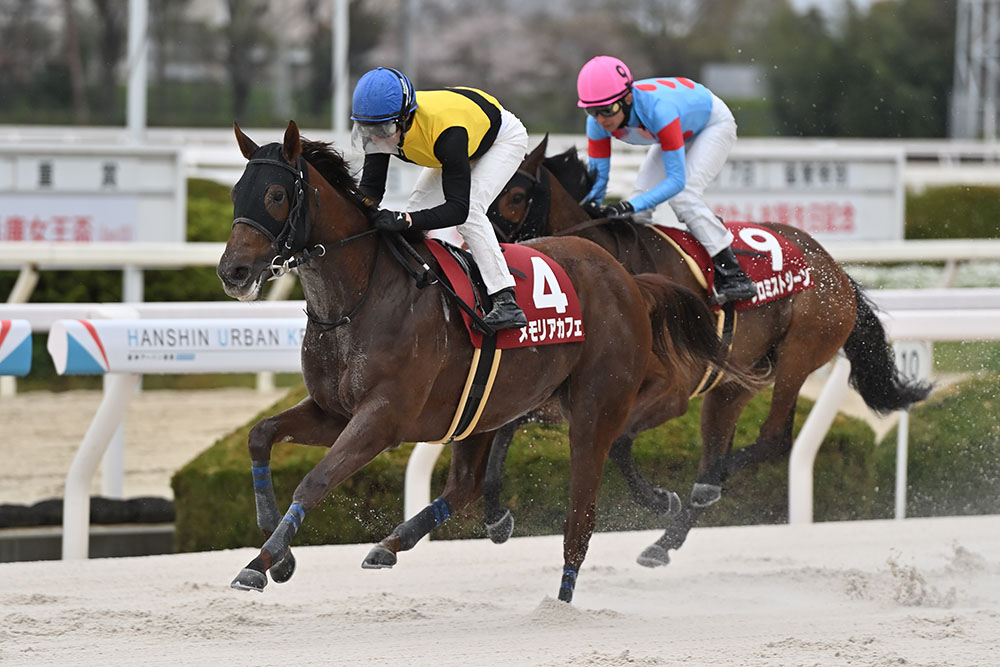 メモリアカフェはこの中間からハミをリングハミからジェーンビットに変更。初勝利を挙げた頃から右にモタれる面があったものの、これまではレースで力を出せていたため大きく踏み込んだ変化はつけずにいた。ところが「前走・クイーン賞3着の負けが私の中で引っ掛かる部分がありました。色々と試した結果、これが一番(モタれる面が)軽減されました」と柄崎将寿調教師。勝因は他にもあった。前走は序盤で力みが見られたが、この日は4カ月ぶりの前走を使ったことで上積みと落ち着きが見られた。それら全てが噛み合っての古馬重賞初制覇となった。