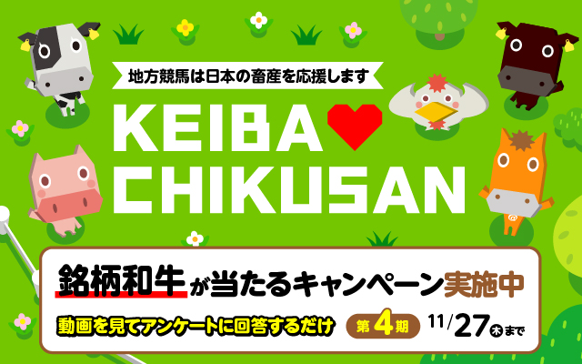 第1期から第3期までたくさんのご応募をいただいたKEIBA♡CHIKUSANキャンペーンの第4期が、本日10月1日(水)より開始いたします!