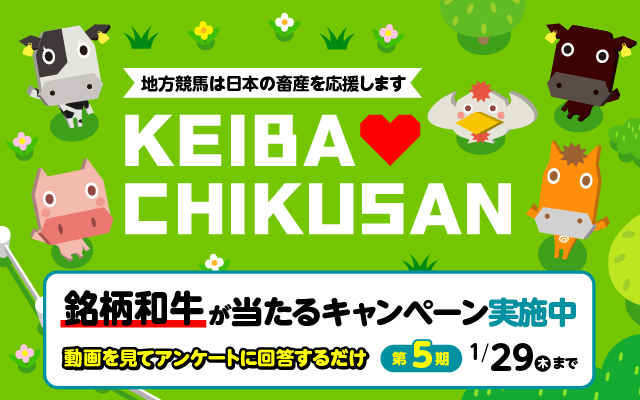 第1期から第4期までたくさんのご応募をいただいたKEIBA♡CHIKUSANキャンペーンの第5期が、本日12月1日(月)より開始します!