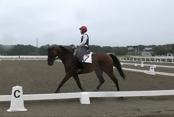 今回の技能審査では、動きのメリハリと地点を正確に通る事を意識して騎乗しました。