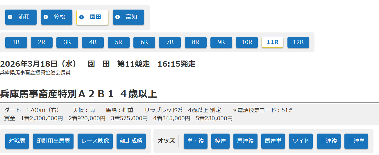 出馬表・オッズ等の競走関連ページにおいて、開催場間及び競走間の遷移ボタンを新設します。